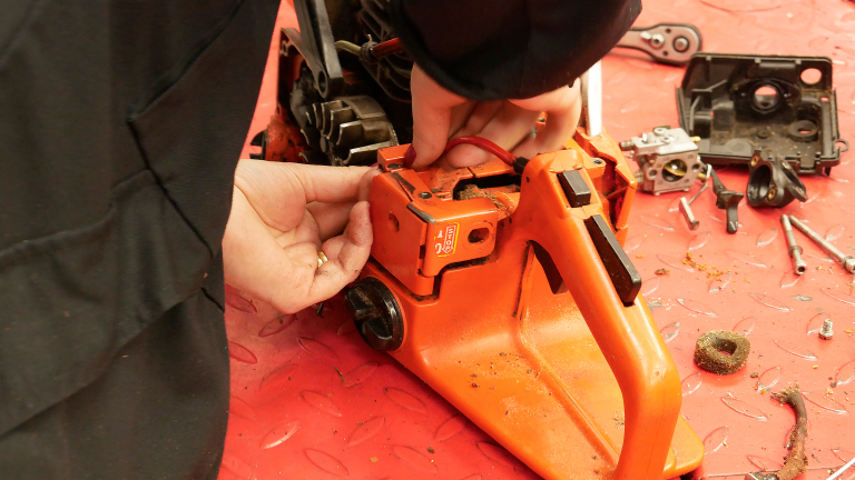 Minua ohjannut työntekijä kysäisi tauon loputtua, että haluanko jatkaa päivää vaihtamalla osan KeKen omaan moottorisahaan. Vastaukseni kuului, että ”tietenkin!” – osallistuin mielelläni myös korjaustöihin. Aiemmin purkamani moottorisaha oli samanlainen, joten vaihdettava osa kierrätettiin siitä. Kyseessä oli virtakatkaisin piuhoineen.